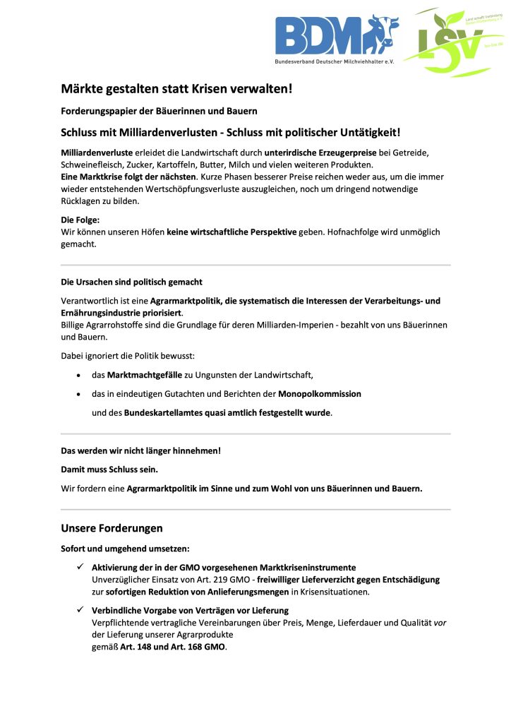 Forderungspapier der Bäuerinnen und Bauern