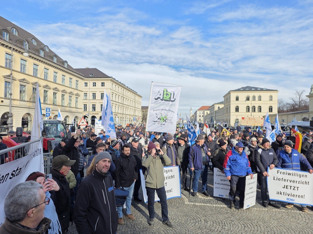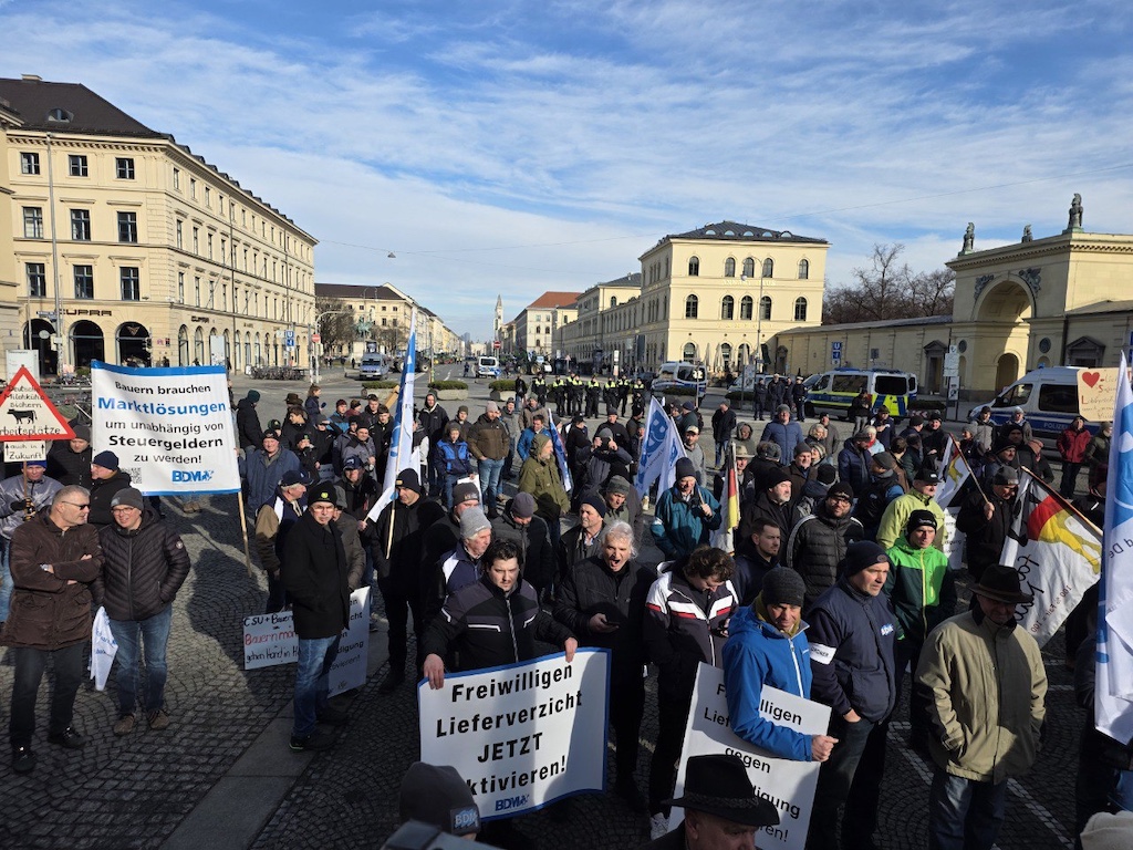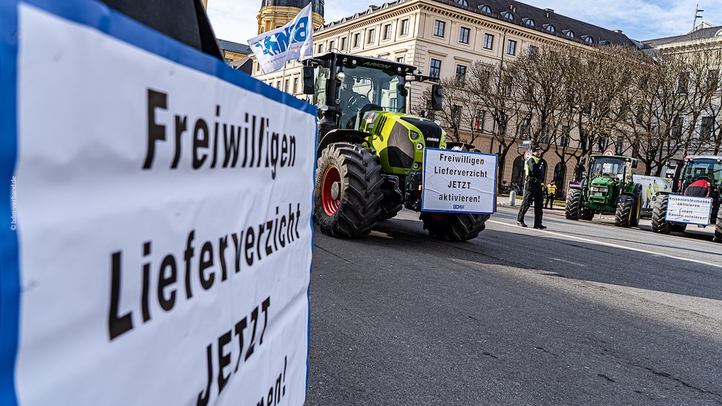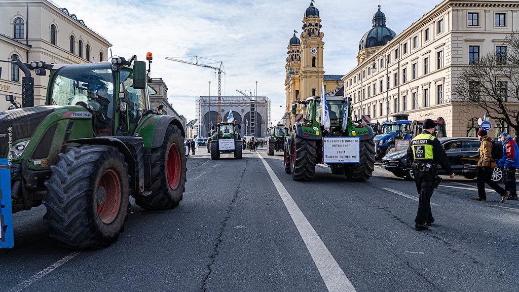 München, 28. Januar – Mit einer Schlepper-Demonstration in der Münchner Innenstadt haben Bäuerinnen und Bauern am Mittwoch erneut ein sofortiges politisches Handeln zur Stabilisierung der Agrarmärkte gefordert.